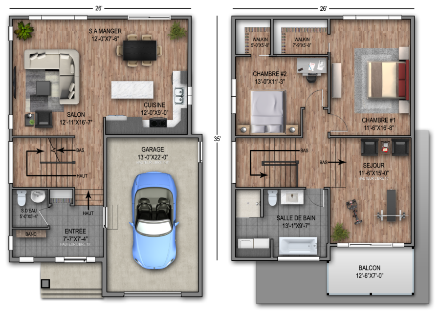 Les vues de plancher 2D s'adressent avant tout au professionnel de la construction pour la présentation et la vente de leurs modèles d'habitation ou de tous types de logements. Toujours dans notre optique de fournir à nos clients un produit de qualité à prix abordable, nous avons développé une méthode de travail efficace et rapide pour la réalisation de ce type de produit qui est complémentaire aux images 3D extérieures de vos projets. Les vues de plancher 2D seront généralement utilisées pour l'affichage sur un site Web, la création de fiche descriptive ou pour insertion dans les magazines ou brochure promotionnelle. Elles seront personnalisables et adaptées aux besoins de chacun de nos clients. En général, elles seront livrées au format JPEG ou PNG (fond transparent) pour une utilisation varier. Plusieurs Entrepreneurs nous confient le soin de réaliser leurs vues de plancher 2D pour une raison bien simple, un service personnalisé à bas prix.