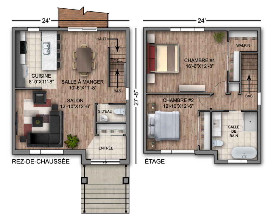 Idéal pour la prévente de projet, les vues de plancher 2D seront utiles pour l'affichage sur les sites Web ou pour la création de magazine ou fiche descriptive.